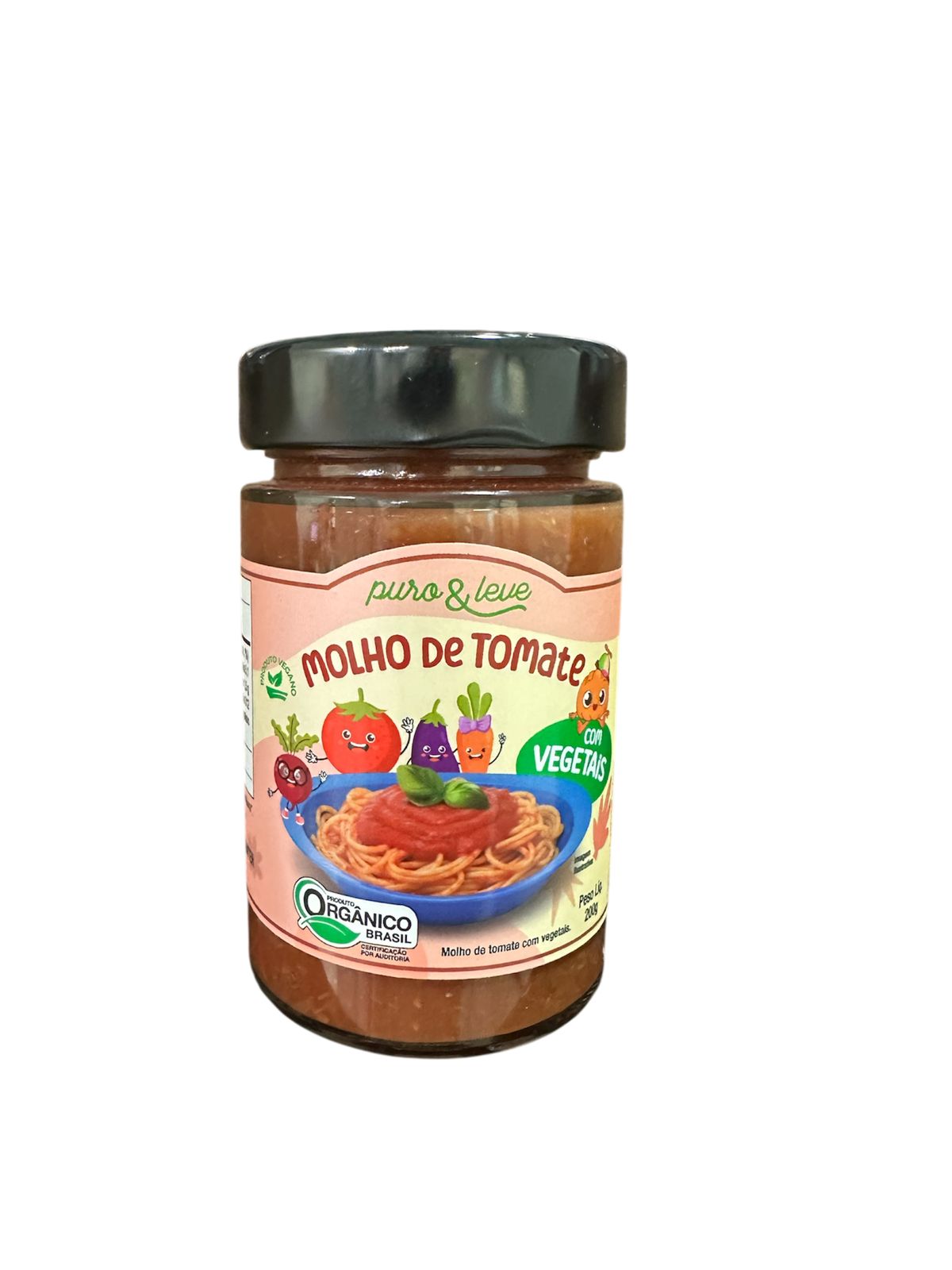 Ingredientes: tomate*, cenoura* berinjela*, beterraba*. abóbora*, sal, polpa de pêra e/ou maçã, amido de mandioca, cebola, orégano e alho.